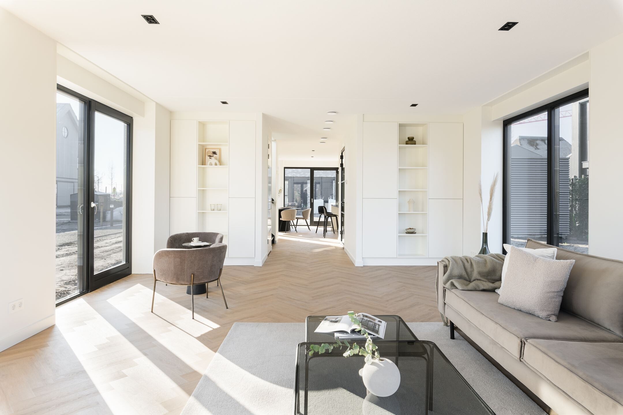 - Sleek interior or herringbone pattern (floor reads as one continuous surface)