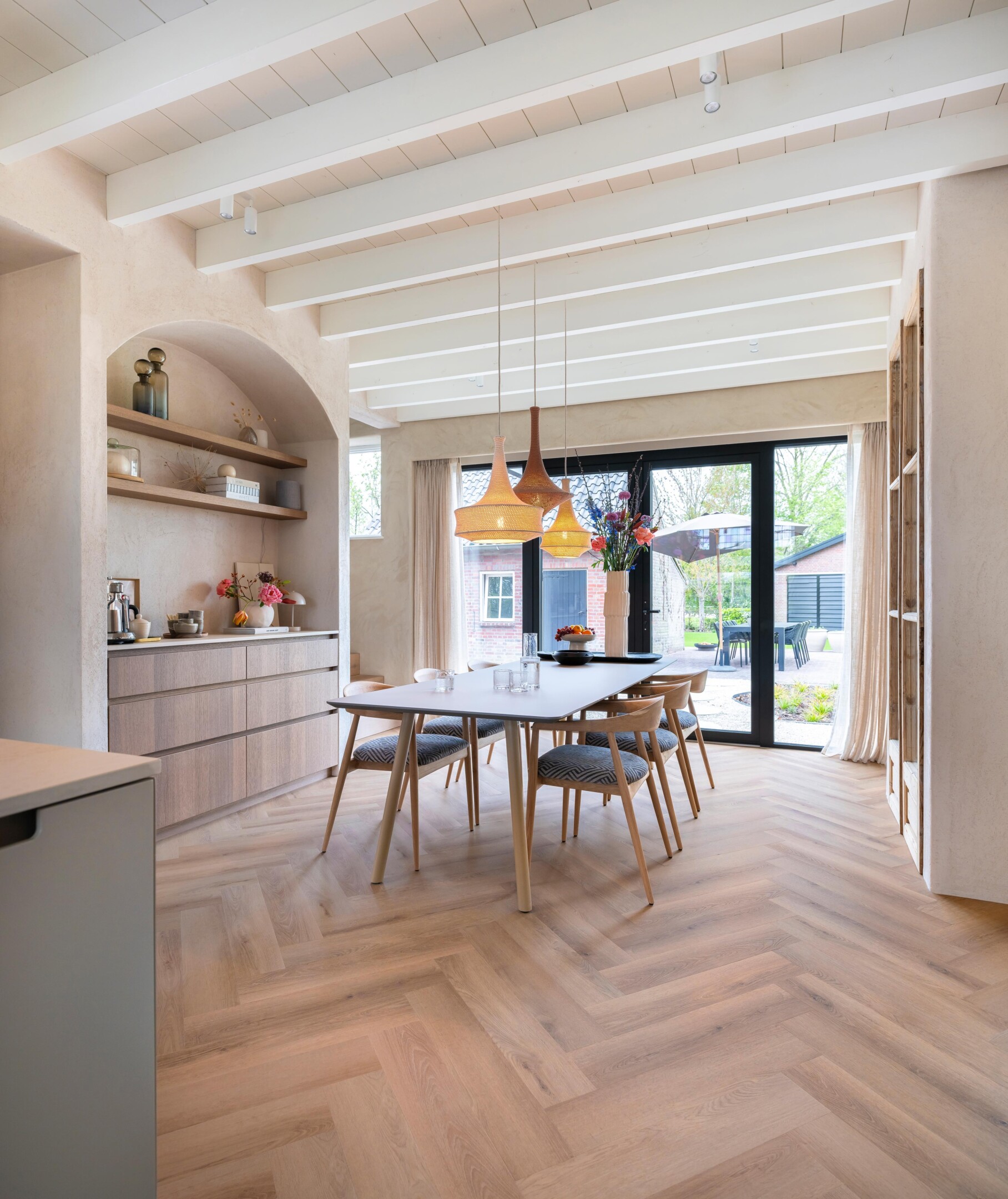 A door frame can also form a natural dividing line. The light falls slightly differently, making the transition feel natural. The key is that each space functions on its own while still feeling part of the same atmosphere.