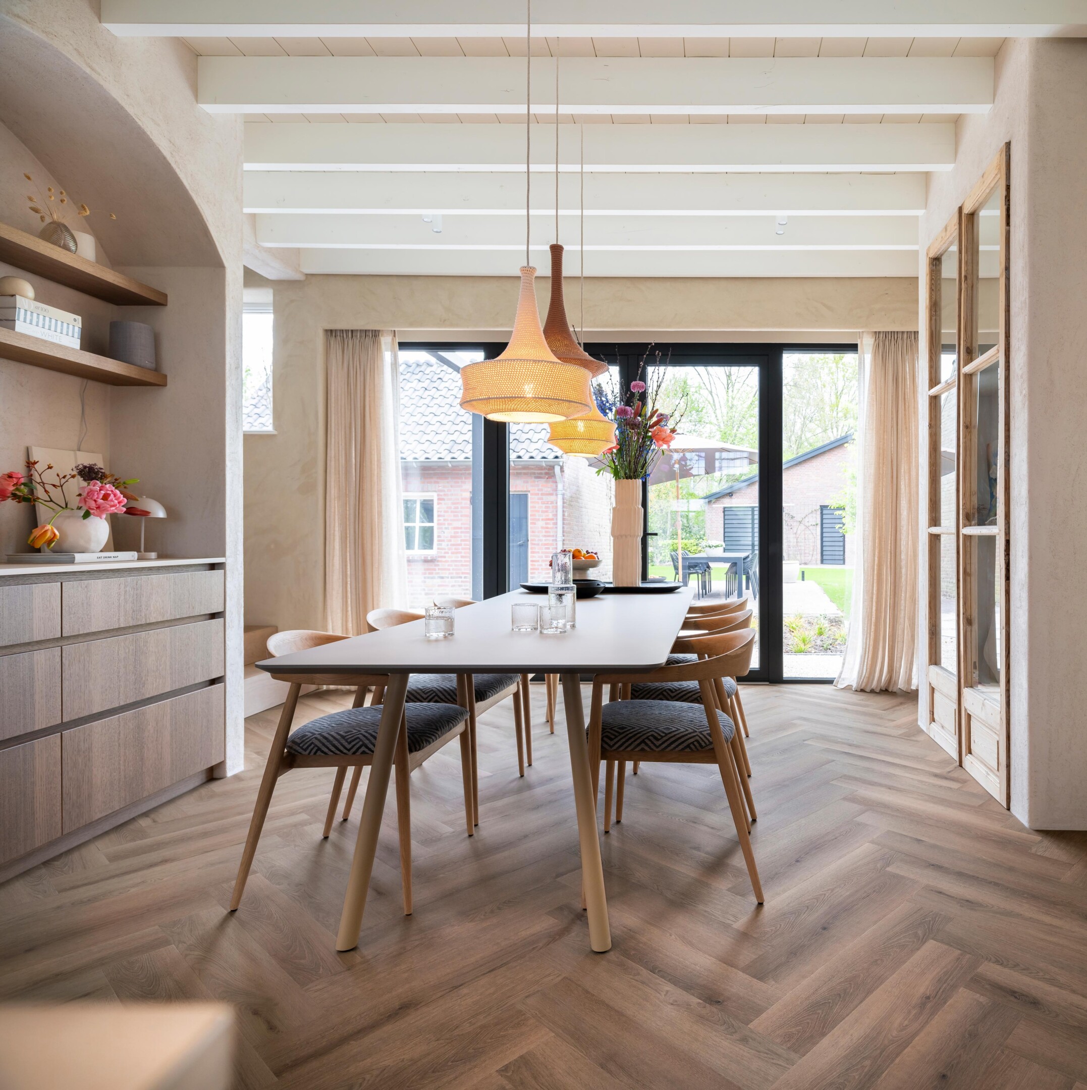 A pattern can transform a floor from a purely functional surface into a central design feature. The classic herringbone floor is the most well-known example. This pattern breaks up standard straight lines and immediately adds a sense of movement, luxury, and handcrafted charm to a space. It creates a subtle play of light and shadow that makes a room feel more lively. A patterned floor is a powerful atmosphere creator, radiating luxury, charm, and coziness on its own while giving the space a timeless, rich appearance.