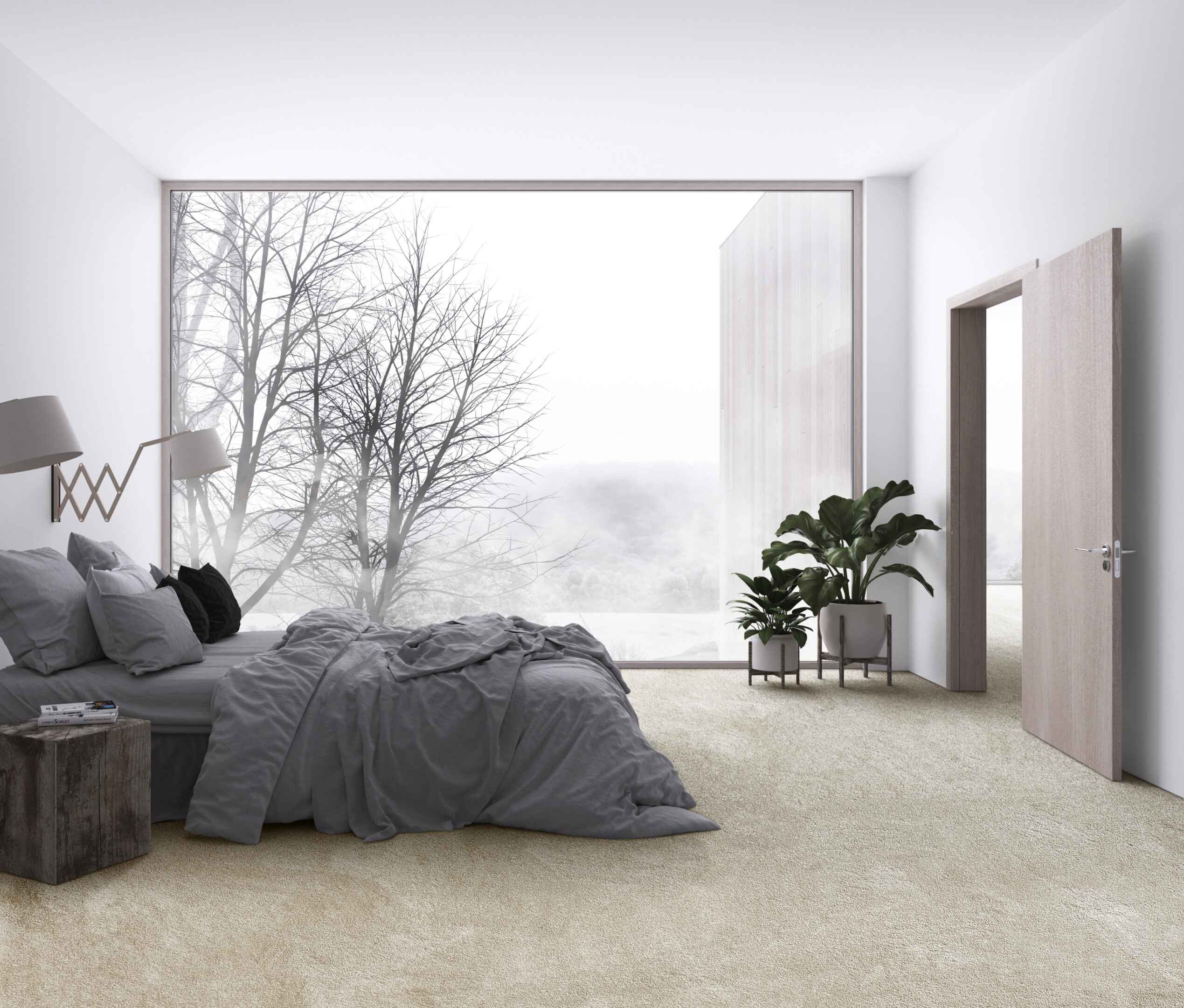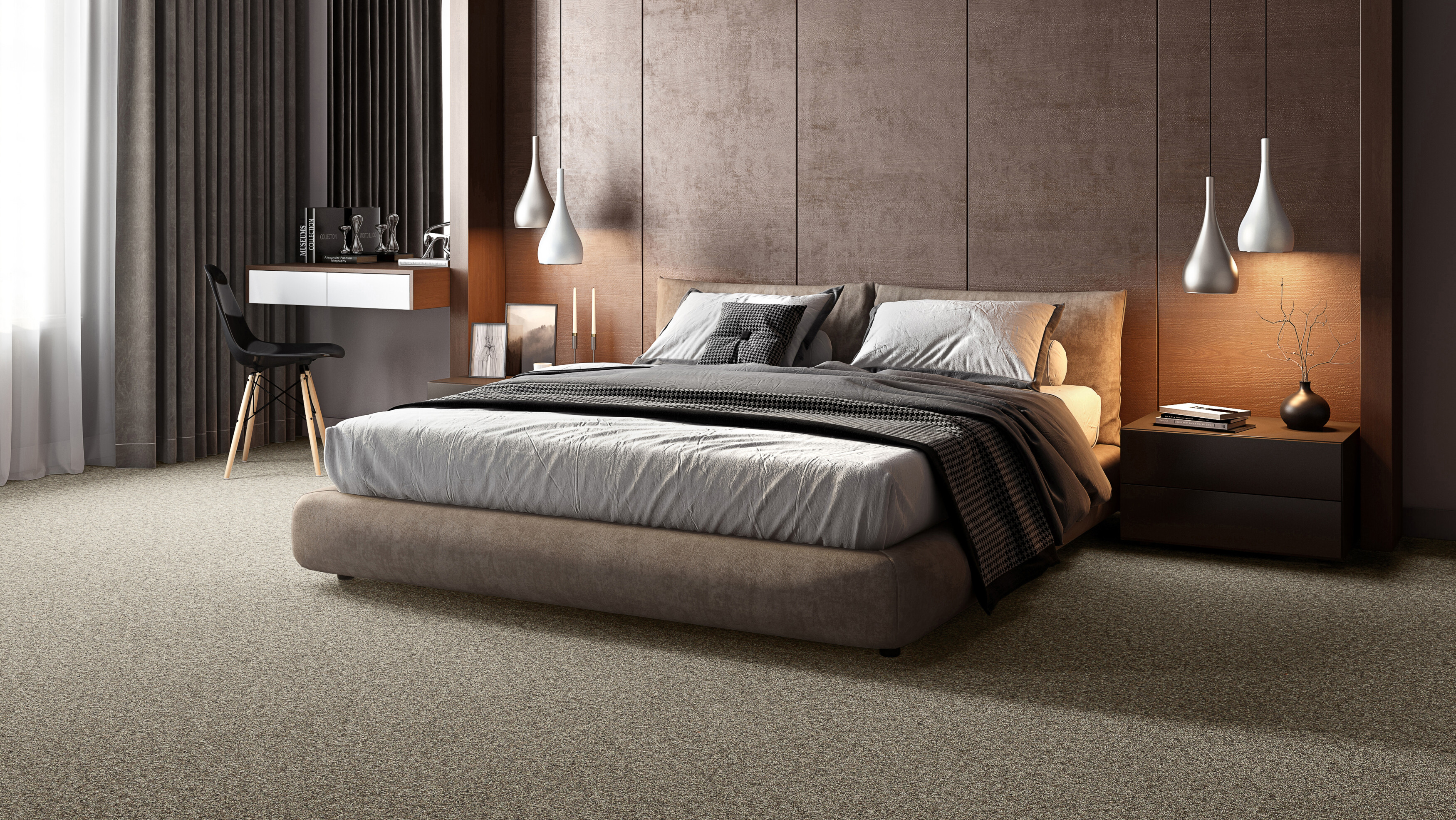 A bedroom calls for softness. When you step out of bed in the morning, carpeting feels immediately pleasant under your feet. The room looks calmer and gains a warm appearance.