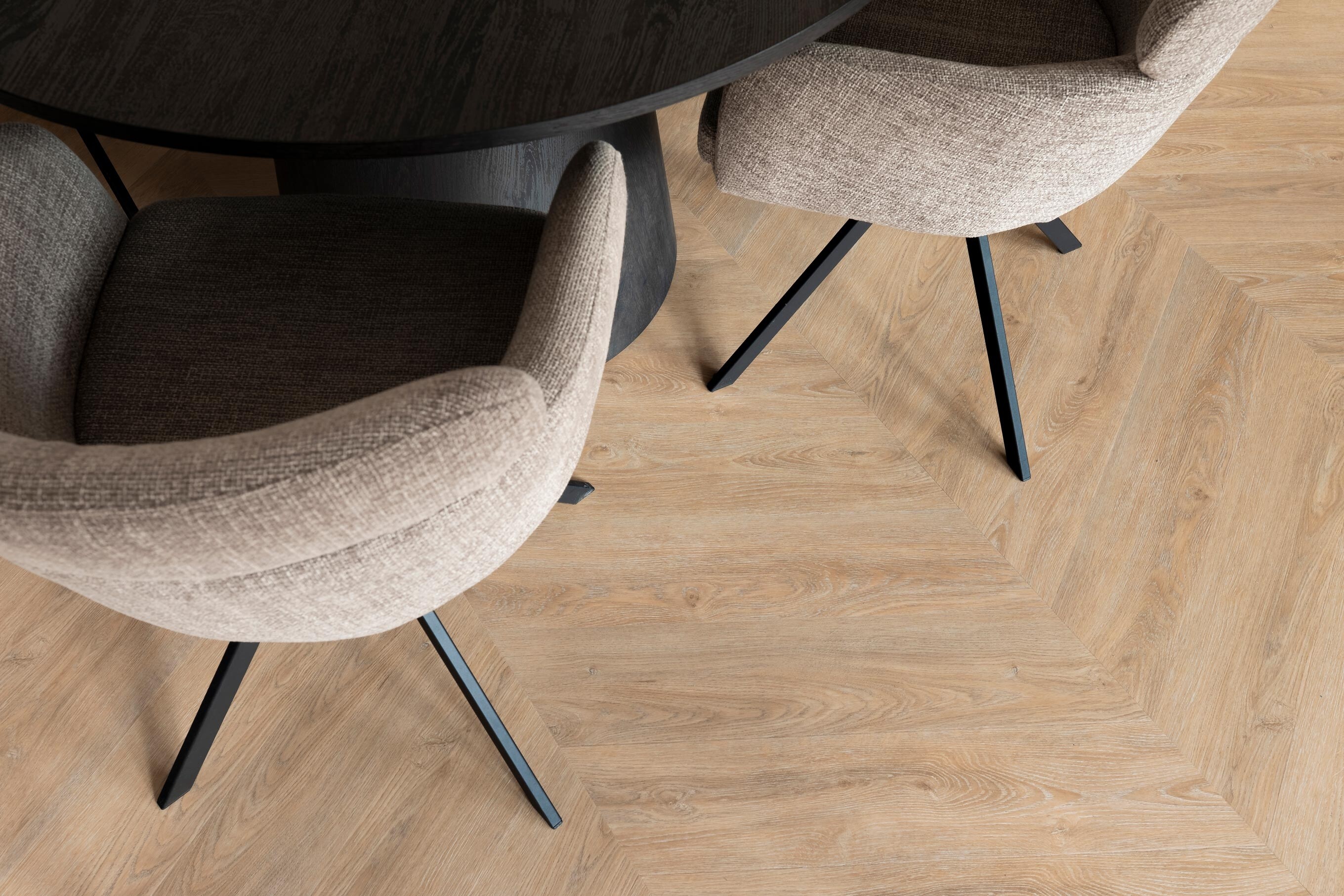Deze collectie is specifiek uitgevoerd in een hoek van 60 graden. Waar een hoek van 45 graden soms wat druk kan ogen door de scherpere punt, zorgt de hoek van 60 graden juist voor een zachtere en bredere punt. Dit geeft de vloer een extra rustige uitstraling en zorgt voor een prachtig ruimtelijk effect, waardoor kamers optisch groter lijken.