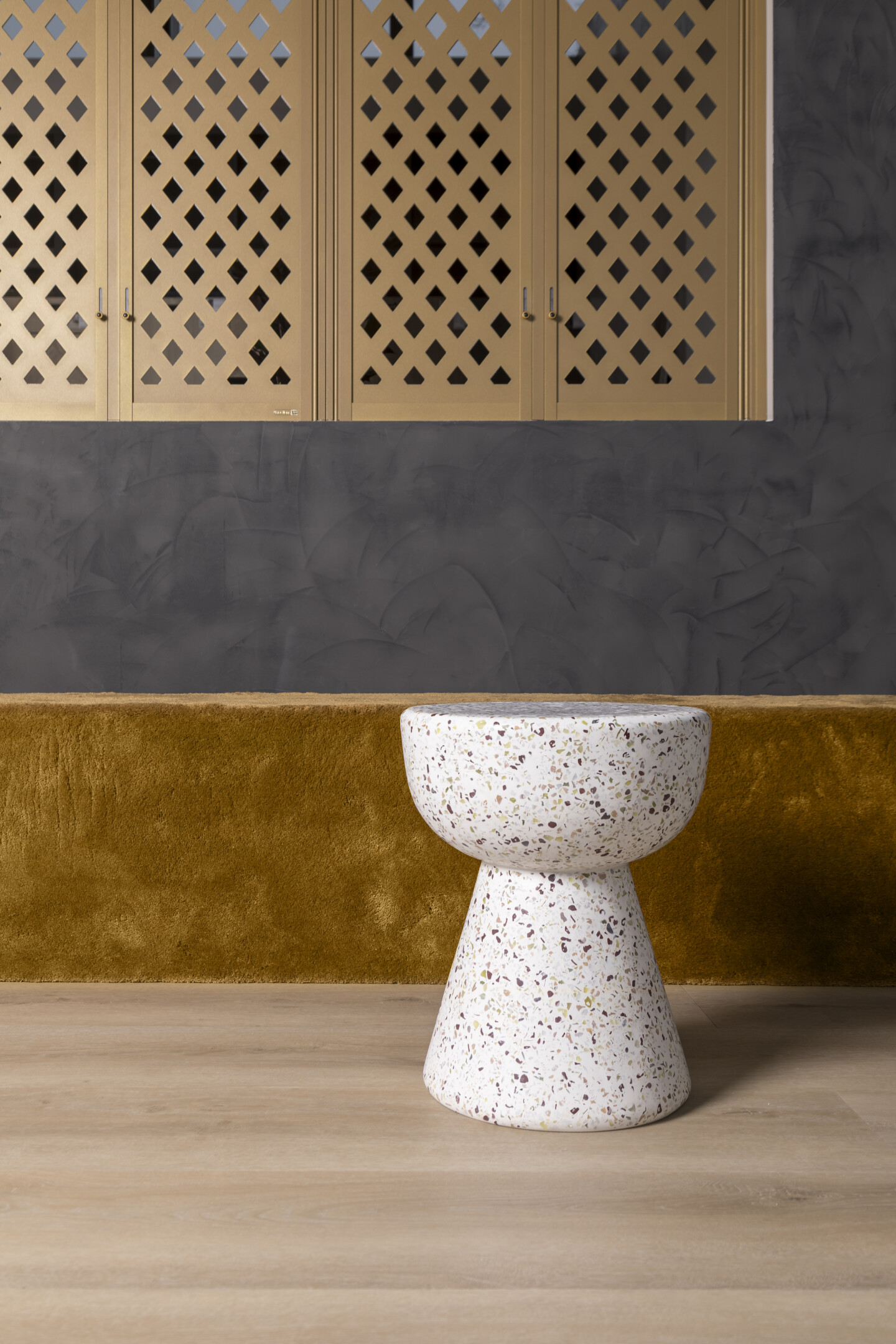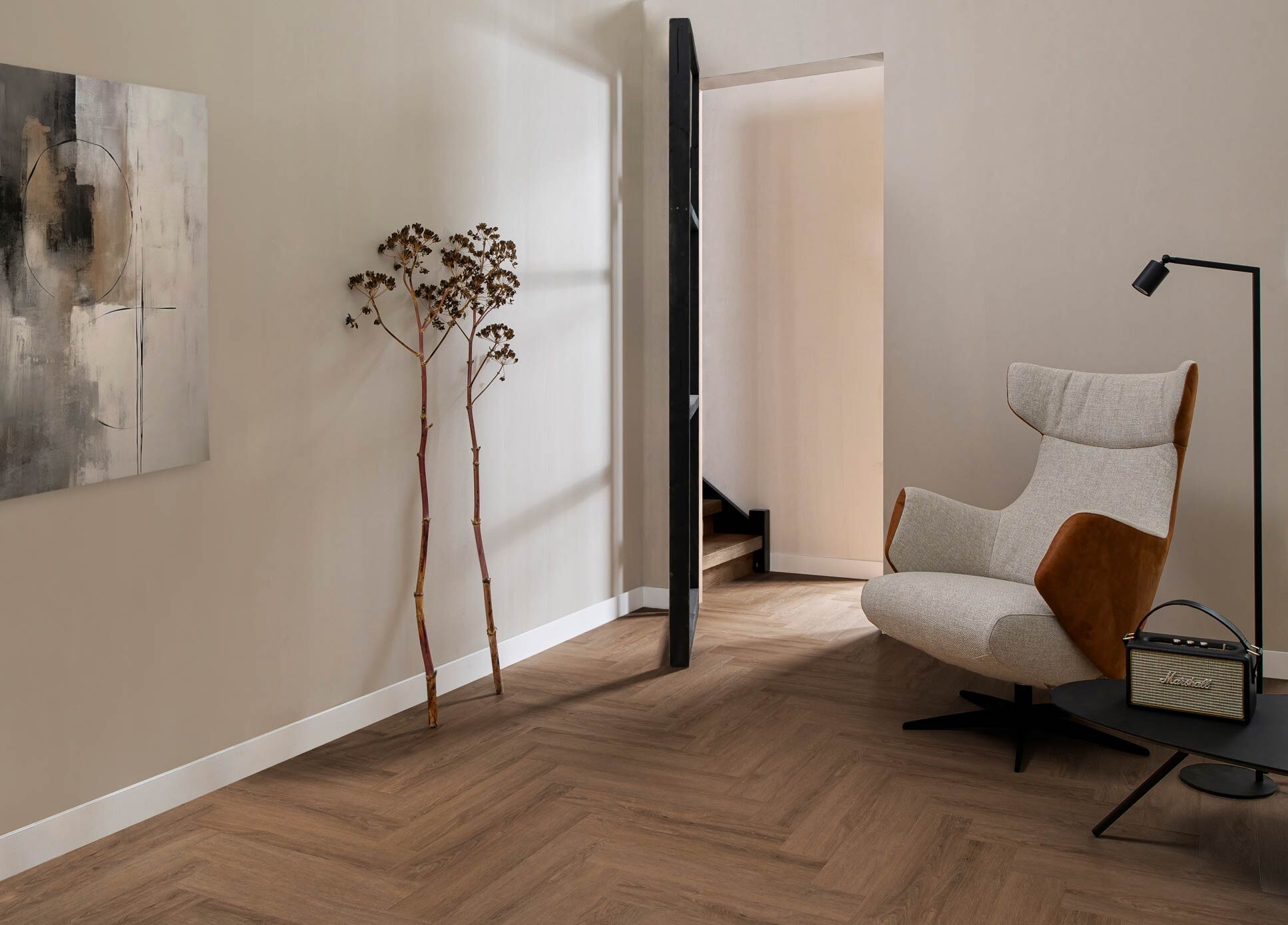 Je ziet hoe de tint meekleurt met jouw interieur. Een vloer met een subtiele beige ondertoon kan naast een houten kast ineens veel warmer lijken.
